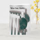 Vous manquez, Hubby, carte de voeux papier pour mari. Le casquette accroché à la chaise à bascule jette une ombre sur le mur de cette photo. Copyright © Shoaff Ballanger Studios, 2023.