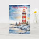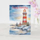 Un phare rouge et blanc en hiver. Convient pour un anniversaire pour n'importe qui