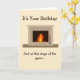 Cette carte légèrement humoristique est conçue pour vous faire rire à l'idée de vieillir. C'est une carte pliable verticale avec beaucoup de place pour partager vos pensées -- mais seulement si vous le souhaitez. Elle comporte un dessin d'une cheminée bruyante sur la couverture qui reflète l'ironie du sentiment exprimé.