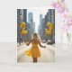 Une jeune femme blonde en robe de pois jaune marche dans une rue de Chicago tenant des ballons d'or en forme de numéros 2 et 3. Le texte intérieur peut être modifié.