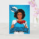La maman afro-américaine qui se transforme en super-maman est une carte mignonne pour donner à ta mère lors de sa journée spéciale. La conception de bandes dessinées est parfaite pour la fête des mères. Design © 2021 Julia Bryant.