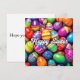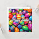 Cette carte de Pâques assez vibrante présente plusieurs oeufs colorés.