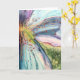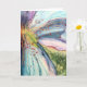 Vue macro rapprochée de l'intérieur d'une fleur tropicale. Le design abstrait dans les couleurs vibrantes présente des lignes dynamiques émanant d'un point central, avec de petites anthères orange qui attirent l'attention des abeilles. Variations de bleu, violet et rose, se mélangent pour créer des pétales bleus et un arrière - plan vert. Les formes fluides et organiques créent un sens du mouvement et de l'énergie, mélangeant de multiples teintes de bleu, vert, violet et jaune. Les cartes de voeux sont un excellent moyen d'express des sentiments personnels.