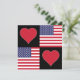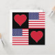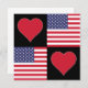 Cartes de voeux américaines carrés pour les Américains fiers. Avec un motif à damiers unique fait de coeurs rouges et le drapeau national des Etats-Unis. Travaille comme une invitation pour les fêtes patriotiques américaines (comme le 4 juillet), tendre la main à des amis et à la famille aux États-Unis, ou pour des projets patriotiques d'artisanat et d'artisanat aux États-Unis !