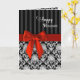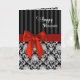 Motifs noirs et blancs élégants avec faux arc/ruban rouge. Le design à l'intérieur aussi. L'image a été conçue numériquement pour un effet plus réaliste, y compris l'arc et le ruban faux rouge. Voir la même image pour Joyeux Noël. Personnalisez l'intérieur avec votre nom
