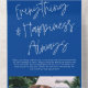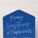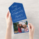Ce design carte photo de vacances amusant dispose d'un arrière - plan bleu vif avec un script de calligraphie moderne blanc et une photo horizontale. Le message d'accueil dit "Joyeux Tout & Bonheur Toujours". À l'extérieur de la carte se trouve votre adresse de retour et un autre message d'accueil personnalisé. Lorsque la photo est déchirée comme souvenir, le destinataire aura également votre salutation au dos de la partie photo. Comme vous pouvez le voir il ya besoin de commander des enveloppes! !