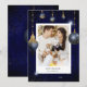 Carte de vacances avec bijoux ornés d'un arrière - plan bleu marine et accents créant un look de vacances sophistiqué et riche. Consultez notre magasin pour plus d'articles de cette collection.