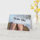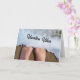 My original photograph is featured on this fun vacation wishes card, consisting of feet in the sandy shore water on the beach, processed with an illustrated style. The front of the card states "Vacation Vibes" and the inside of the card states "Here’s hoping you put your feet in the water and have a fun and relaxing vacation!". A great card for anyone leaving on a trip or vacation to an island beach or coast.