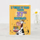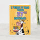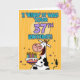 "J'ai 'entendu' que c'était votre 37e anniversaire !" vache de fun pour l'anniversaire tenant une carte de vœux avec gâteau d'anniversaire.