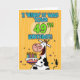 "J'ai dit que c'était ton 49e anniversaire !", amusante vache d'avant-jour tenant une carte de voeux pour gâteau d'anniversaire.