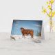 Carte Vache Brown dans un champ couvert de neige