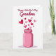 This card shows a bubblegum-pink mason jar in the center, with soft highlights that make it look slightly see-through. From the jar’s opening, a stream of hearts floats upward in an arc, ranging from light rose to deep crimson. Some hearts look folded and slightly 3D, which makes them feel like little paper shapes lifting into the air. The background is plain white, so the pink jar and red hearts stand out clearly without any distractions. Near the top, the words “Happy Valentine’s Day Grandma” appear in flowing, connected red lettering. It feels meaningful because it looks like love is being poured out and sent straight to someone who’s cared for you for a long time 🥰. Giving it to Grandma is a simple way to say she’s loved, remembered, and appreciated on Valentine’s Day ❤️, and it’s a sweet way to share Valentine’s Day sentiments.