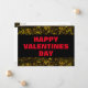 Il s'agit d'une carte de voeux de style carte postale. Ce design a un peu de glamour et de brillance. Il y a une parties scintillant en or qui a l'air d'arrière - plan avec une couverture de boîte noire. Dans les grandes lettres rouges en gras, le message dit "HEUREUX JOUR DES VALENTINES". Il y a aussi des lignes de l'adresse postale. Si vous ne souhaitez pas utiliser cette carte postale, vous pouvez supprimer les lignes régies et utiliser cette carte avec une enveloppe.