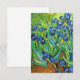 Carte représentant la peinture à l’huile Irises de Vincent van Gogh (1889). Inspirée pendant son séjour dans un asile, cette vie morte représente de beaux iris bleus dans différentes nuances. Un grand cadeau pour les amateurs de post-impressionnisme et d'art hollandais.