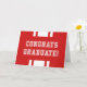 Carte de félicitations de style Varsity avec les mots "Félicitations au diplômé !" et des bandes blanches sur un fond de couleur modifiable (cliquez sur Personnaliser pour changer).