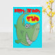 Gros requin caricature vert avec salutation cinquième anniversaire.