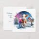 Une jolie carte de Noël personnalisée avec une vache à l'aquarelle debout près d'une clôture en bois rustique devant une grange. Carte de Noël à thème pour les paysans.