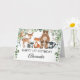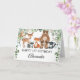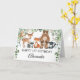 Carte d'anniversaire adorable sur le thème des bois avec de mignons animaux de la forêt et de la verdure rustique aquarelle. Objets correspondants disponibles dans notre magasin!