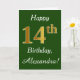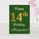 Carte Vert, Faux Gold 14e anniversaire + Nom personnalis