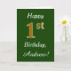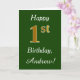 Ce simple design de carte d'anniversaire comporte le message "Joyeux 1er anniversaire", avec le "1er" ayant une apparence fausse or. Il porte également un nom personnalisé et un arrière - plan vert foncé. On pourrait le donner à quelqu'un qui célèbre son premier anniversaire.