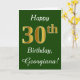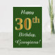 Carte Vert, Faux Gold 30e anniversaire + Nom personnalis