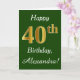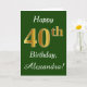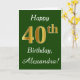 Carte Vert, Faux Gold 40e anniversaire + Nom personnalis