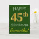 Carte Vert, Faux Or 45e Anniversaire De Mariage + Nom