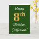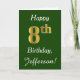 Carte Vert, Faux Or 8ème anniversaire + Nom personnalisé