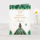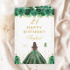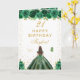 Cette carte d'anniversaire élégante et glamour peut être personnalisée avec un nom ou un titre comme fille, petite-fille, nièce, ami etc. Le design présente une belle princesse aux cheveux brunes et à la peau claire dans une robe de boule verte. Le texte combine écriture manuscrite et polices sans serif modernes pour un look élégant et sophistiqué. Les compositions florales, les papillons et les confettis d'or créent un mélange parfait de rustique et de chic. Graphiques par www.etsy.com/uk/shop/SunflowerDayLove
