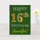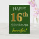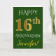 Cette carte de vœux d'anniversaire de mariage simple et personnalisée comporte le message "JOYEUX 16e ANNIVERSAIRE", le "16e" ayant une apparence similaire à de l'or imitation. La couverture comporte également un nom personnalisé et un fond vert. L'intérieur comporte un message de vœux d'anniversaire de mariage personnalisé. Cela pourrait être offert à un mari ou une femme pour célébrer le seizième anniversaire de mariage du couple. [~Z0000086]