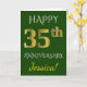 Carte Vert, Or Imité 35e Anniversaire de Mariage + Nom