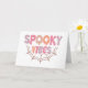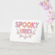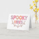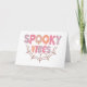 Ce design amusant et festif d'Halloween présente la phrase « Spooky Vibes » dans une police ludique et dégoulinante qui donne au texte un effet gluant et inquiétant. Les mots sont remplis de teintes douces et pastel de rose, d'orange, de violet et de pêche, ajoutant une touche légère et fantaisiste au thème effrayant. Sous le texte, une simple illustration de toile d'araignée de couleur marron clair ajoute une touche classique d'Halloween, reliant le design. La combinaison des couleurs pastel et des éléments effrayants crée un contraste unique qui est à la fois mignon et un peu effrayant, ce qui le rend parfait pour Halloween.