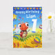 Une petite coccinelle magnifique planant au-dessus des tournesols et apportant une salutation colorée d'anniversaire pour le de 1 an très spécial en votre monde.