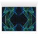Carte blanche avec Arrière - plan fractal coloré en bleu, vert et noir.
