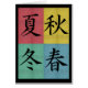 Jolie, colorée carte de voeux montrant les quatre saisons dans le kanji japonais avec quatre couleurs d'arrière - plan représentant chaque saison. Le contour noir peut être facilement changé en cliquant sur sur le bouton de customiser. Visitez le magasin pour les cadeaux assortis.