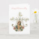 Voici une jolie image catholique traditionnelle de la Sainte Vierge Marie, avec un bouquet floral en contrebas sur une Croix mariale aux lys blancs. La même image avec un sainte chapelet est à l'intérieur à gauche de la carte. Le texte et les polices peuvent être modifiés.