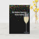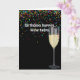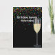 Verre de vin blanc en verrerie avec confettis d'anniversaire et citation amusante sur arrière - plan noir. Le devis peut être modifié. La couleur Arrière - plan peut être modifiée.