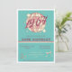 Invitation rétro de style Vintage pour un 60ème anniversaire de bash! Préparez-vous à chanter sous la boule disco, avec un brin de rose clair et un script vintage super "1964" sur un arrière - plan turquoise de couleur bleue.