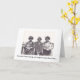 Une photo vintage de trois femmes amies. Les oiseaux d'une plume se rassemblent ! Ils ont l'air d'utiliser une bonne blague et un rire. Le recto de la carte dit, "Nous sommes le genre d'amis qui rient à une blague trois fois..." À l'intérieur de la carte : "...Une fois qu'on l'a dit, Encore une fois quand quelqu'un nous l'explique, Et une troisième fois cinq minutes plus tard quand on l'obtient enfin !"