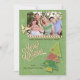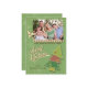Ce design est composé d'un arrière - plan vert avec des flocons de neige et un aspect "patiné" et est complété par un arbre de Noël d'inspiration vintage. Téléchargez votre propre photo dans le cadre découpé de ce design contemporain et customisez les champs de texte pour ajouter votre nom et d'autres informations ou supprimer un des champs de texte si vous préférez en avoir un seul. La typographie unique dit : "Joyeux Noël". Une jolie canne à canne et des feuilles saints complètent le look de ce design. L'envers présente le même design arrière - plan.