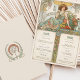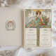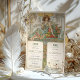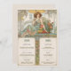 Élevez votre réception de mariage avec ce délicieux menu de Mariage Art Nouveau Vintage et la carte des boissons. L'avant présente une magnifique illustration d'une femme réfléchie ornée de fleurs, entourée de motifs floraux complexes dans des pastels doux de vert, bleu et rose. Le dos présente un élégant emblème floral, parfait pour ajouter une touche d'élégance intemporelle à votre journée spéciale. Cette carte sert non seulement de menu fonctionnel, mais aussi de belle tenue pour vos invités. Idéal pour les mariages à thème vintage, ce design incarne la beauté et le raffinement de l'époque Art Nouveau.