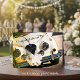 Wedding or anniversary congratulations card featuring a vintage car with festive bridal bows. A beautiful card to congratulate a couple with their wedding or to congratulate with an anniversary. The image on the inside is a transparent one, so that you can choose your own background colors if you do not want blue. If you do not use printed text, you will need a lighter background to be able to write on. Choose "customize" for all options.