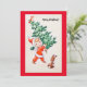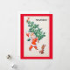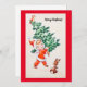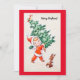 Carte de vacances Red Cute Retro Vintage Christmas Girl Holding Tree.