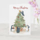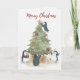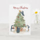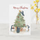 A cheerful and nostalgic Christmas card featuring a group of adorable penguins decorating a festive tree. One penguin gently places the shining star on top while the others unwrap gifts and celebrate in the snow. Soft vintage tones, classic holiday ornaments and a warm Merry Christmas greeting create a charming old fashioned holiday moment. A lovely card for anyone who enjoys playful winter illustrations with a traditional touch.