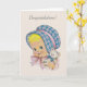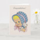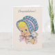 Retro / Vintage Nouvelle carte bébé. Adorable petite fille avec son ours en peluche ! Félicitation ! Bienvenue pour un nouvel ajout !