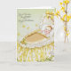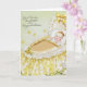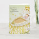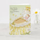 Envoyez vos sincères félicitations avec cette carte de félicitations vintage pour bébé fantastique. L'image présente un bébé doux dans un beau bassinet avec un arc jaune, satin et détails floraux. Le visage et les yeux du bébé sont très expressifs et magnifiquement peints. Vous pouvez facilement entrer vos propres félicitations et nom de bébé. Vous pouvez modifier davantage le style, la couleur, la taille et le placement de la police si vous le souhaitez.