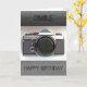 Une photographie noire et blanche d'un appareil-photo vintage sur un fond gris