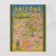 Cette carte postale présente une illustration vintage d'une carte de l'Arizona et un cactus.