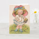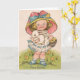 Carte Vintage Girl With Bunny Easter Greeting Card