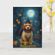 Célébrez Halloween avec cette charmante carte de style vintage avec un adorable chien dans un casquette sorcier tenant une lanterne citrouille brillante. Parfait pour les amoureux des animaux de compagnie et les amateurs de saison éffrayante !